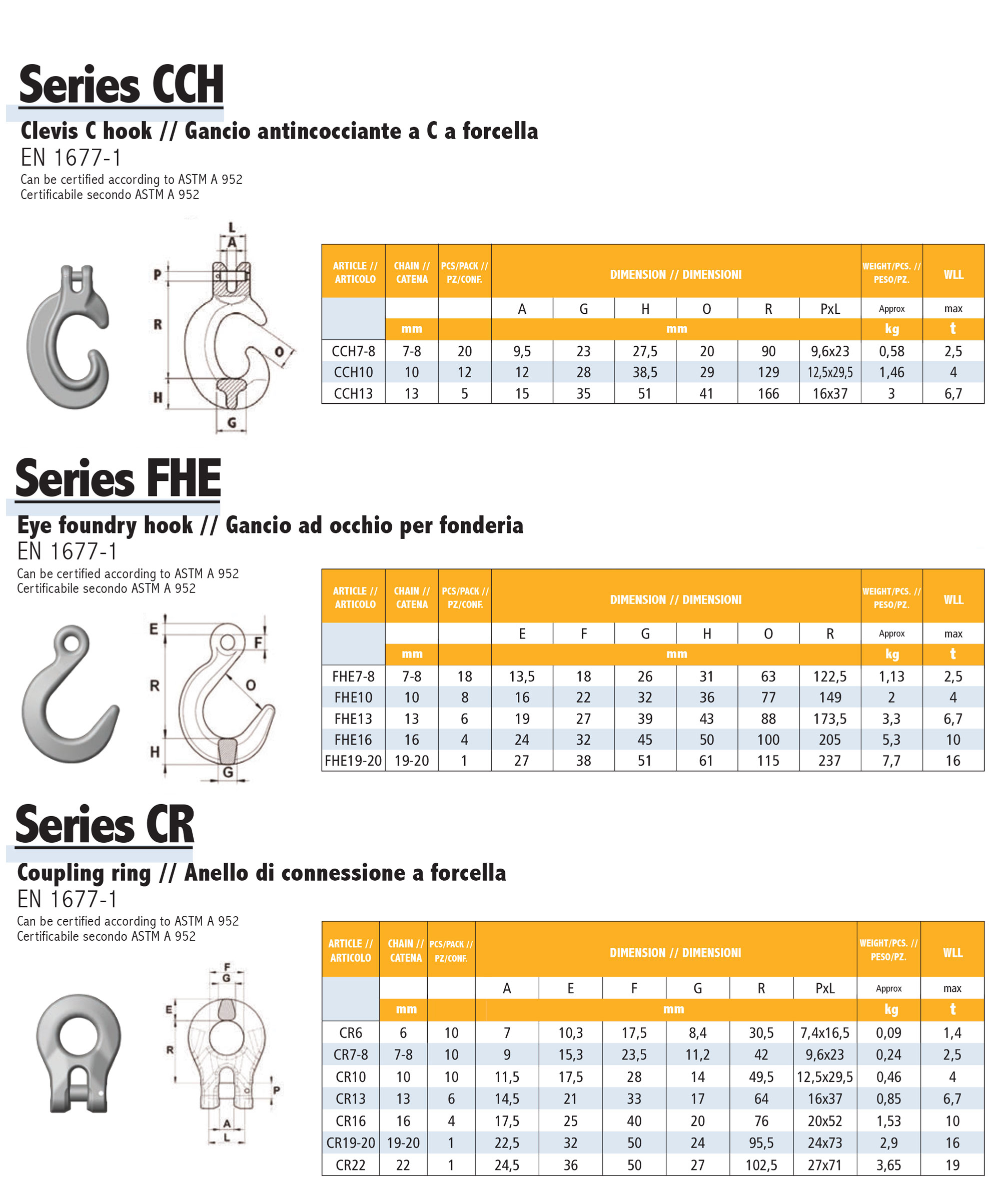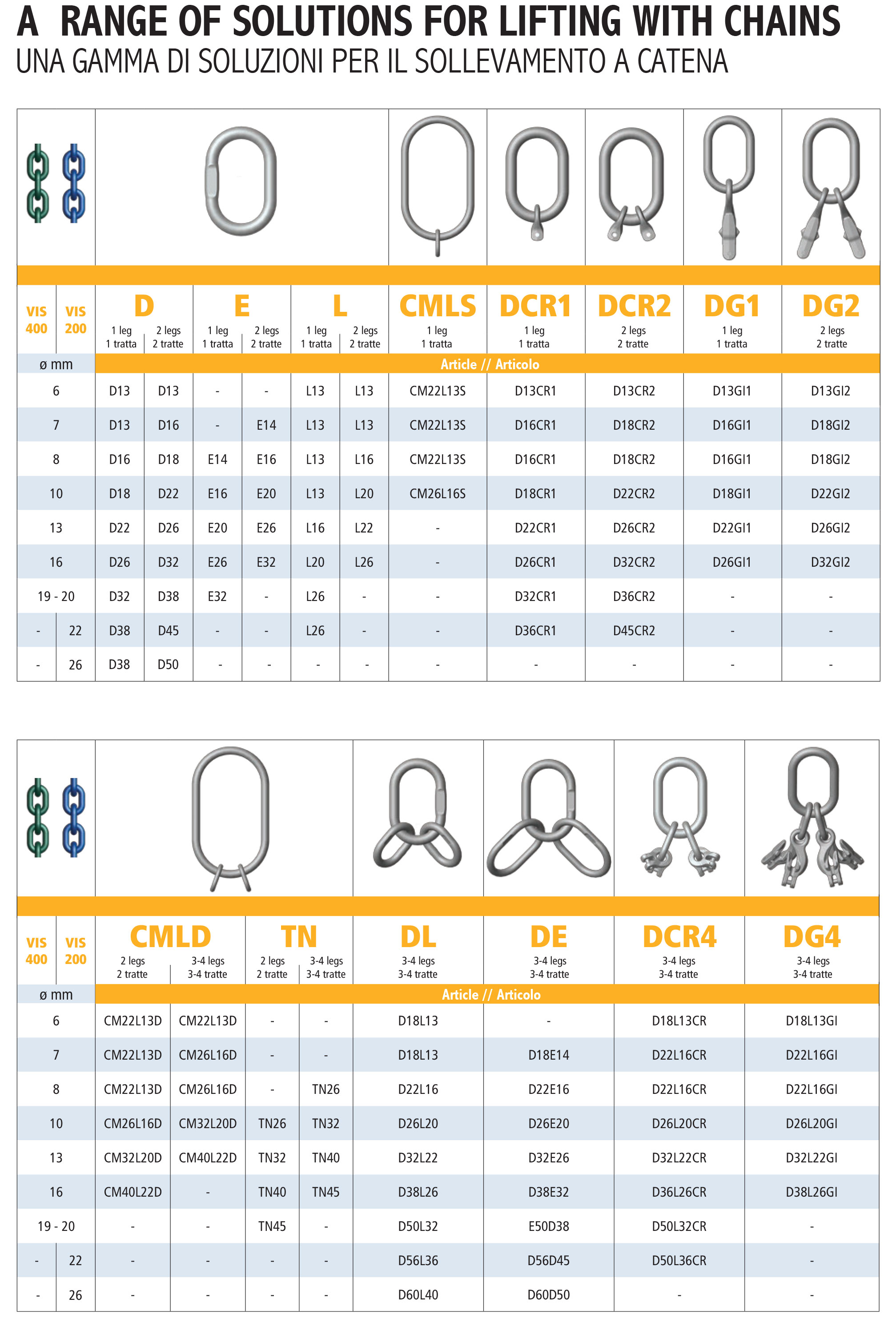 The Grade 100 chain was developed by Kito Chain Italia's long experience and accumulated technology. Combined use of super strong Kito Chain Italia Link Chain and fittings assures the highest degree of safety in use, and the light weight also assures exceptional ease of handling.